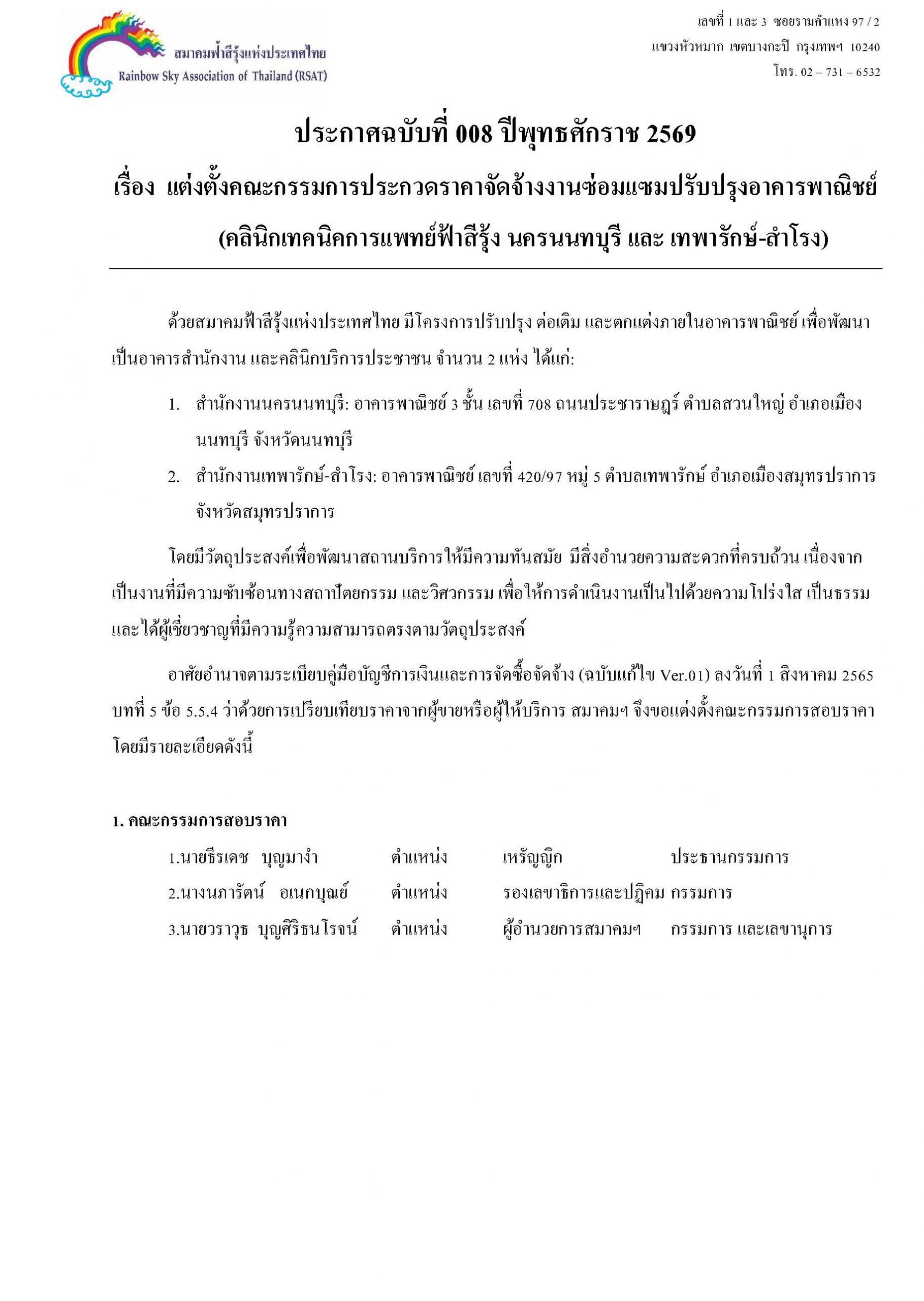 เรื่อง แต่งตั้งคณะกรรมการประกวดราคาจัดจ้างงานซ่อมแซมปรับปรุงอาคารพาณิชย์ (คลินิกเทคนิคการแพทย์ฟ้าสีรุ้ง นครนนทบุรี และ เทพารักษ์-สำโรง)
